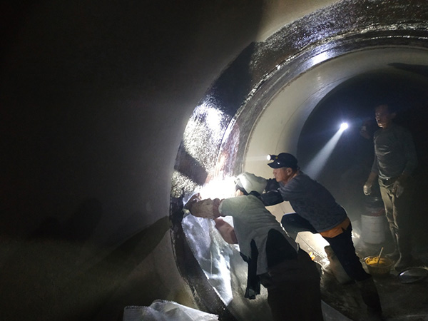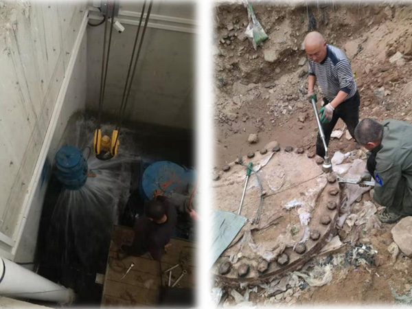 2019年10月份,在调水运行期间因自动化故障,莱山一号阀门井截止阀突然关闭,造成了管道内形成了巨大的水锤,给管道造成了很大的破坏,被迫暂停了向威海调水。因当时威海正处在严重的缺水状态,如果不能及时对管道进行抢修,就会给威海造成水荒。为此,山东省调水工程维护中心和烟台分中心紧急成立了抢险指挥部,公司被指挥部指定为专项应急抢修抢险队。依据公司专业水利工程的专业水平和丰富的实践经验,公司迅速制定出了抢修抢险方案,方案批准后,公司经过九昼夜奋力抢修,排除重重困难,将破损的管道修复好,确保了给威海的调水任务顺利进行,受到了抢险指挥部的表彰。多年来公司还参加了多起不同境况的抢修抢险任务,成长为一支过硬的专业抢修抢险专业队伍。